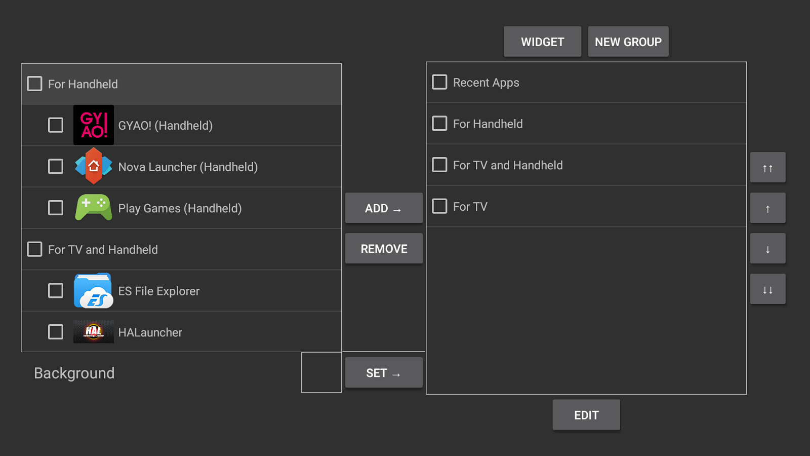 "HALauncher" is a launcher for displaying and opening non-Android TV applications quickly on the Nexus Player, ADT-1, Nvidia Shield and the Razor Forge, Fire TV.